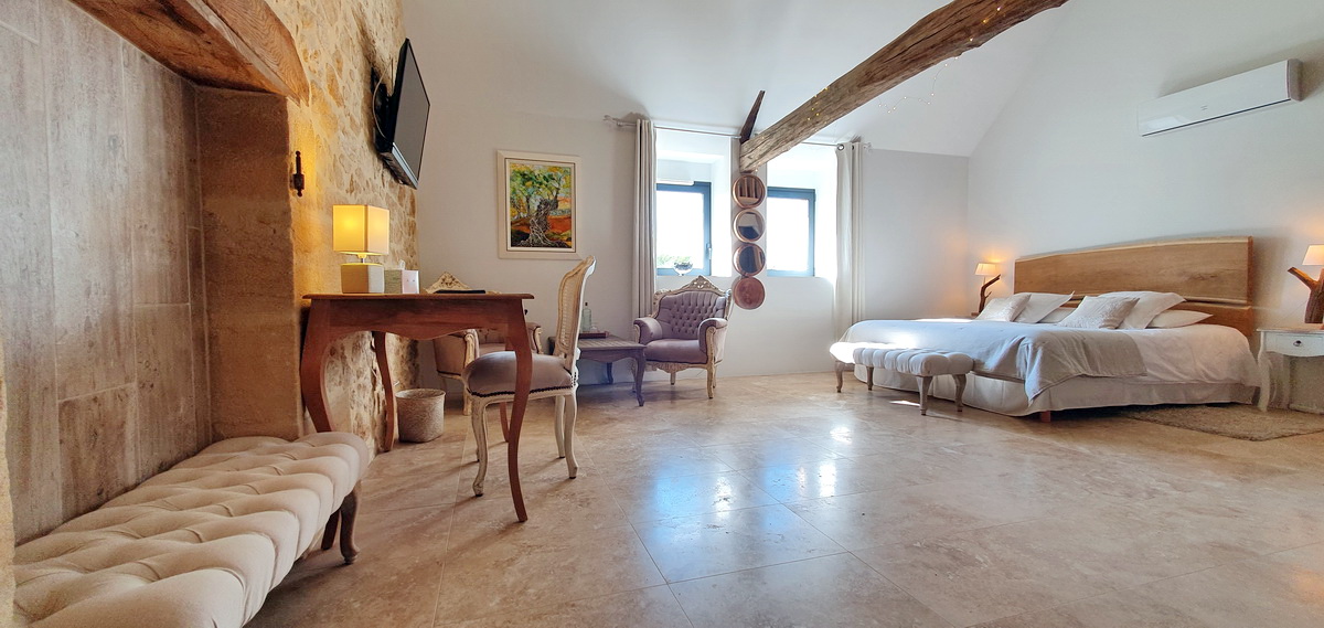 Cuenta con 5 lujosas habitaciones, todas con aire acondicionado, con una gran cama king size, TV, conexión WiFi gratuita, baño con ducha italiana y baño de islas, un aseo independiente.