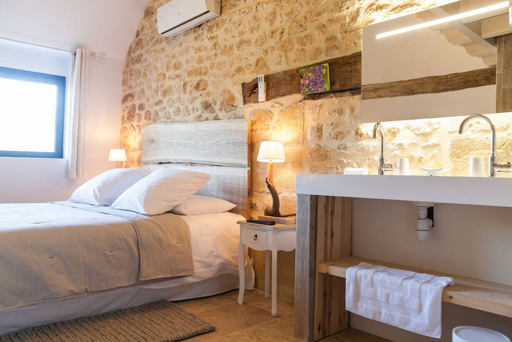 La chambre Rocamadour luxueuse et confortable est insonorisée et climatisée, orientée à l’ouest, elle donne sur les champs et la forêt alentour.